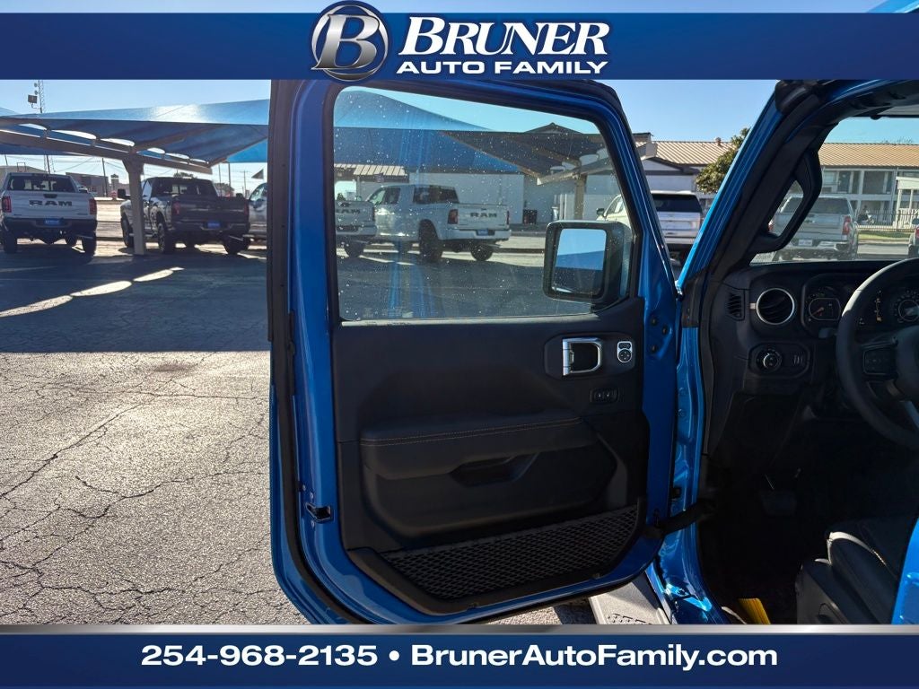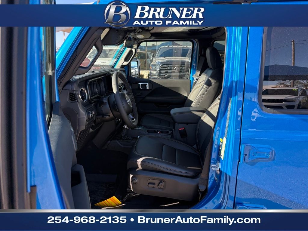 Convenience Group: Emergency/Assistance Call; Front Door Locks 2-Door Passive Entry; Remote Start System; Cluster 7.0" TFT Color Display; Universal Garage Door Opener; Daytime Running Lamp System; Heated Front Seats; Air Conditioning W/Auto Temp Control; Heated Steering Wheel; Corning Gorilla Glass. Quick Order Package 24J Texas Trail: Leather Wrapped Shift Knob; Premium Door Trim Panel; Side Steps; LT255/75R17C Tires; Power 4-Way Passenger Lumbar Adjust; Power 4-Way Driver Lumbar Adjust; Body Color Fender Flares (2-Piece); Power Adjust 8-Way Front Passenger Seat; Security Alarm; Rear Armrest W/Cupholder Seat; Hard Seat Back; Advanced Brake Assist; Willys Suspension; Body Color 3-Piece Hard Top; Texas Trail; Automatic Headlamps; 5. 950 lbs GVWR; Deep Tint Sunscreen Windows; 17" X 7.5" Painted Black Wheels; Central ADAS Decision Module (CADM); Premium McKinley Trimmed Seats; Full Speed Forward Collision Warning Plus; Power Heated Mirrors; Daytime Running Lamp System; Power Adjust 8-Way Driver Seat; Full Length Floor Console Premium Armrest; Premium Wrapped Steering Wheel; Leather Wrapped Park Brake Handle; Sun Visors W/Illuminated Vanity Mirrors; Texas Trail Tailgate & Hood Decals. MOPAR All-Weather Slush Mats. **Equipment listed is based on original vehicle build and subject to change. Please confirm the accuracy of the included equipment by calling the dealer prior to purchase.**