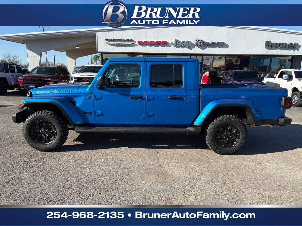 Discover the 2026 Jeep Gladiator Texas Trail — the perfect blend of rugged capability and modern comfort, now available in Stephenville, TX. This 4WD Jeep Gladiator comes powered by a responsive V6 3.6L gasoline engine, delivering confidence whether you're cruising city streets or tackling off-road trails. Designed for adventure, the Texas Trail trim adds durable features and purposeful styling that make every drive an excursion. Inside, enjoy advanced convenience and safety tech: a Back-Up Camera for easier parking and trailhead maneuvers, Forward Collision Warning to help protect you and your passengers, and Automatic Climate Control to keep the cabin comfortable on every Texas day. Remote Start brings added convenience in any season, while Android Auto keeps your smartphone safely integrated for navigation, music and hands-free calling. This Jeep Gladiator Texas Trail is priced to sell — offering the best price in the Stephenville market — making it an exceptional value for buyers who want capability and modern amenities without compromise. With robust towing and payload capacity, durable truck-bed utility, and Jeep's legendary off-road DNA, this Jeep Gladiator is ready for work, play, and everything in between. Don't miss your chance to own a 4WD V6 Jeep Gladiator that balances performance, safety, and tech at the best price in Stephenville, TX. Contact us today to schedule a test drive and experience the Jeep Gladiator Texas Trail for yourself.