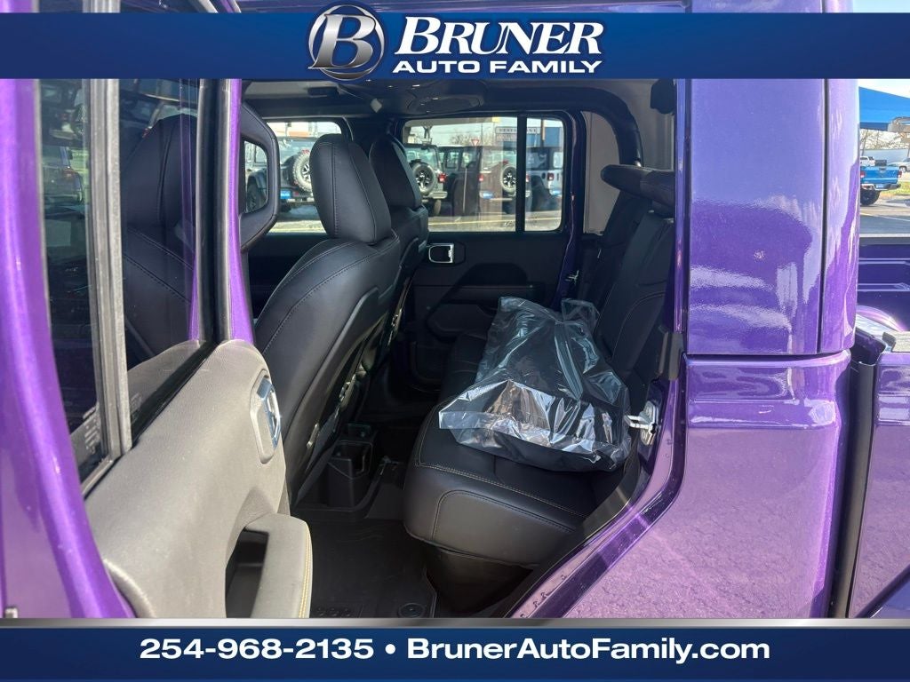 Convenience Group: Emergency/Assistance Call; Front Door Locks 2-Door Passive Entry; Remote Start System; Cluster 7.0" TFT Color Display; Universal Garage Door Opener; Daytime Running Lamp System; Heated Front Seats; Air Conditioning W/Auto Temp Control; Heated Steering Wheel; Corning Gorilla Glass. Quick Order Package 24J Texas Trail: Leather Wrapped Shift Knob; Premium Door Trim Panel; Side Steps; LT255/75R17C Tires; Power 4-Way Passenger Lumbar Adjust; Power 4-Way Driver Lumbar Adjust; Body Color Fender Flares (2-Piece); Power Adjust 8-Way Front Passenger Seat; Security Alarm; Rear Armrest W/Cupholder Seat; Hard Seat Back; Advanced Brake Assist; Willys Suspension; Body Color 3-Piece Hard Top; Texas Trail; Automatic Headlamps; 5. 950 lbs GVWR; Deep Tint Sunscreen Windows; 17" X 7.5" Painted Black Wheels; Central ADAS Decision Module (CADM); Premium McKinley Trimmed Seats; Full Speed Forward Collision Warning Plus; Power Heated Mirrors; Daytime Running Lamp System; Power Adjust 8-Way Driver Seat; Full Length Floor Console Premium Armrest; Premium Wrapped Steering Wheel; Leather Wrapped Park Brake Handle; Sun Visors W/Illuminated Vanity Mirrors; Texas Trail Tailgate & Hood Decals. LED Headlamp & Fog Lamp Group: Daytime Running Lamps LED Accents; Front LED Fog Lamps; LED Premium Reflector Headlamps. Reign. MOPAR All-Weather Slush Mats. **Equipment listed is based on original vehicle build and subject to change. Please confirm the accuracy of the included equipment by calling the dealer prior to purchase.**