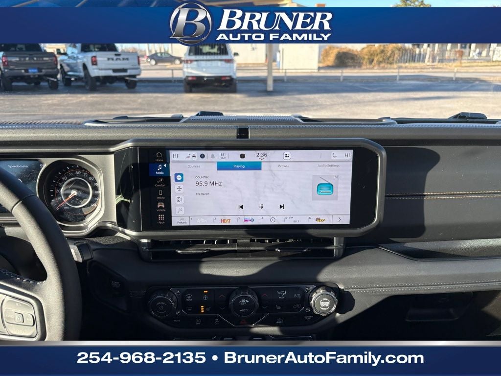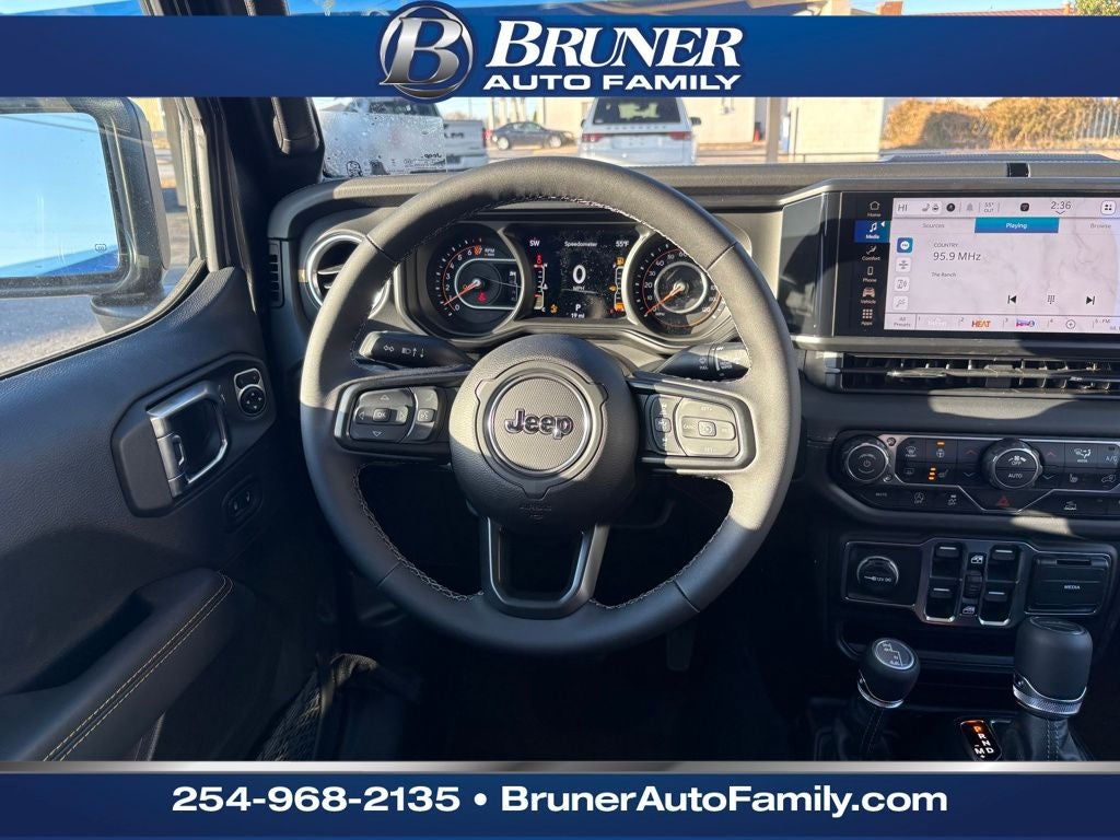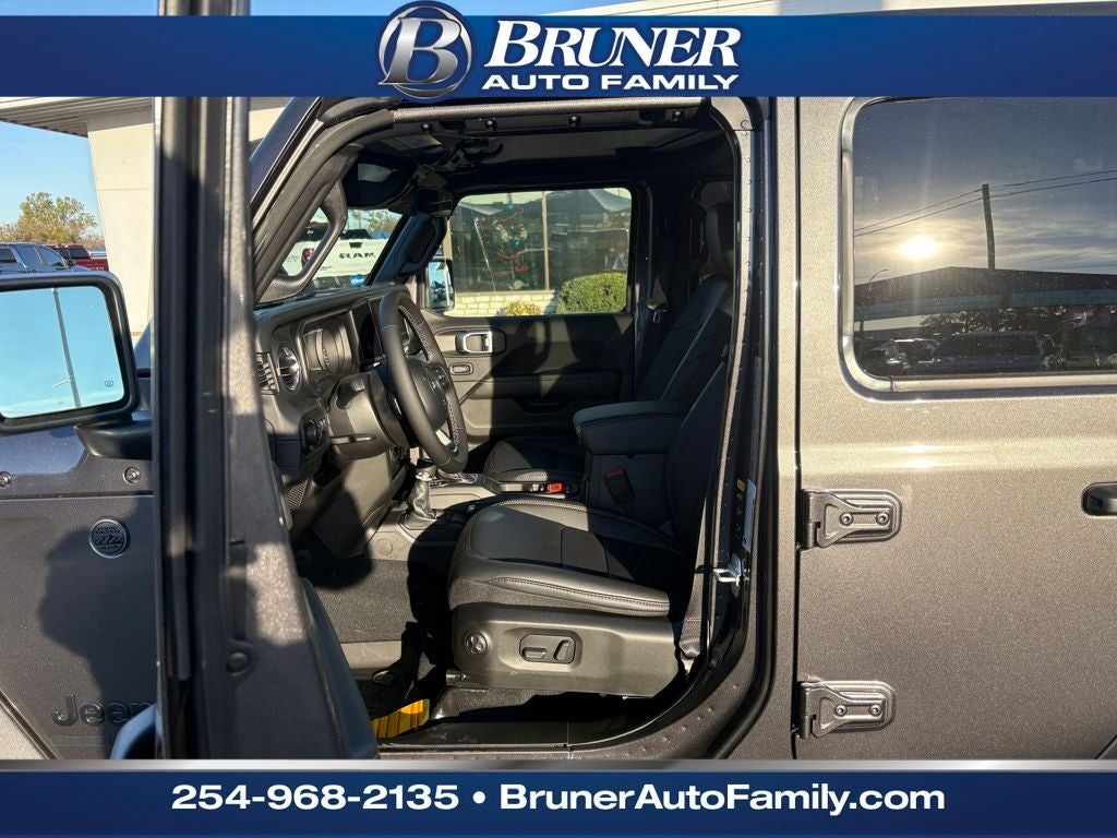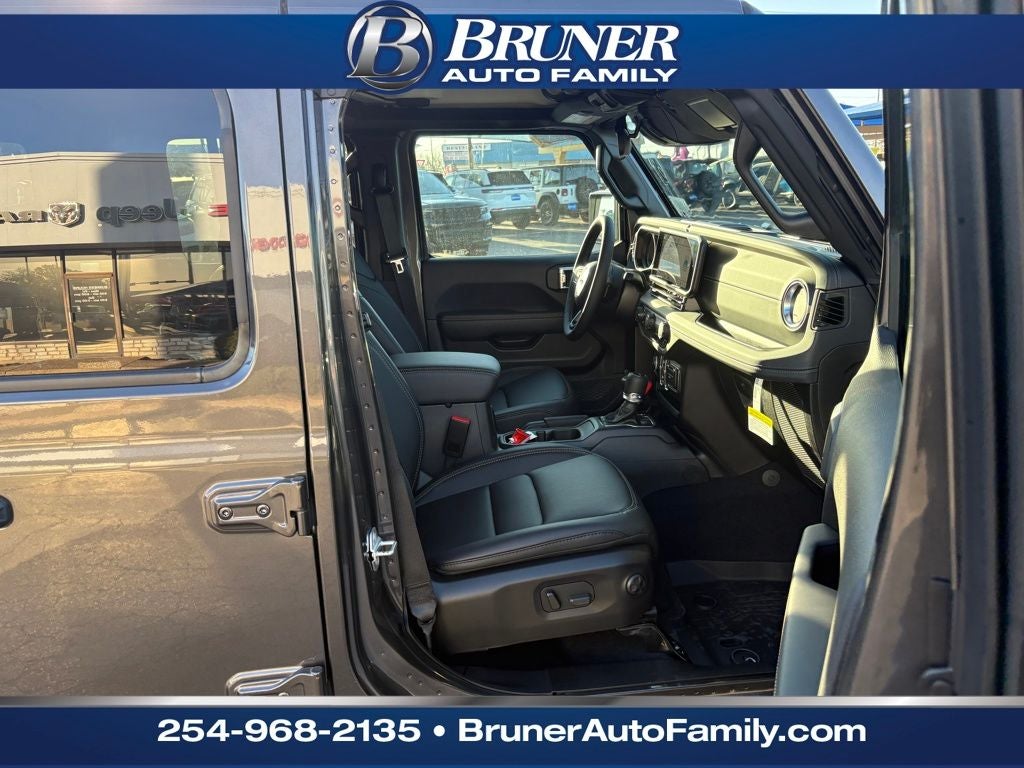 Convenience Group: Emergency/Assistance Call; Front Door Locks 2-Door Passive Entry; Remote Start System; Cluster 7.0" TFT Color Display; Universal Garage Door Opener; Daytime Running Lamp System; Heated Front Seats; Air Conditioning W/Auto Temp Control; Heated Steering Wheel; Corning Gorilla Glass. Quick Order Package 24J Texas Trail: Leather Wrapped Shift Knob; Premium Door Trim Panel; Side Steps; LT255/75R17C Tires; Power 4-Way Passenger Lumbar Adjust; Power 4-Way Driver Lumbar Adjust; Body Color Fender Flares (2-Piece); Power Adjust 8-Way Front Passenger Seat; Security Alarm; Rear Armrest W/Cupholder Seat; Hard Seat Back; Advanced Brake Assist; Willys Suspension; Body Color 3-Piece Hard Top; Texas Trail; Automatic Headlamps; 5. 950 lbs GVWR; Deep Tint Sunscreen Windows; 17" X 7.5" Painted Black Wheels; Central ADAS Decision Module (CADM); Premium McKinley Trimmed Seats; Full Speed Forward Collision Warning Plus; Power Heated Mirrors; Daytime Running Lamp System; Power Adjust 8-Way Driver Seat; Full Length Floor Console Premium Armrest; Premium Wrapped Steering Wheel; Leather Wrapped Park Brake Handle; Sun Visors W/Illuminated Vanity Mirrors; Texas Trail Tailgate & Hood Decals. Granite Crystal Metallic Clearcoat. MOPAR All-Weather Slush Mats. **Equipment listed is based on original vehicle build and subject to change. Please confirm the accuracy of the included equipment by calling the dealer prior to purchase.**