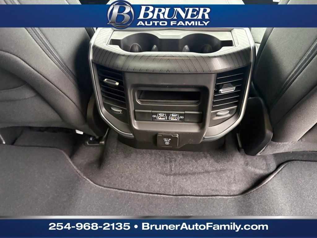 Quick Order Package 27Z Big Horn. Big Horn Level 2 Equipment Group: Google Android Auto; SiriusXM Radio Service; USB Host Flip; Power Adjustable Pedals; Leather Wrapped Steering Wheel; Integrated Voice Command with Bluetooth®; 12" Touchscreen Display; Glove Box Lamp; Auto Power-Folding Mirrors; 115V Auxiliary Rear Power Outlet; Media Hub with 2 Charge Only USBs; Heated Front Seats; Security Alarm; Black Premium Power Mirrors; Apple CarPlay; Premium Overhead Console; 9 Amplified Speakers with Subwoofer; Disassociated Touchscreen Display; Body Color Fender Flares; Remote Tailgate Release; 115V Auxiliary Power Outlet; LED Dome Lamp with On/off Switch; Universal Garage Door Opener; 2nd Row in Floor Storage Bins; Sun Visors with Illuminated Vanity Mirrors; LED Footwell Lighting; Rear Window Defroster; Integrated Center Stack Radio; Rear View Auto Dim Mirror; Rear Power Sliding Window; Connectivity - US/Canada; GPS Navigation; 4G LTE Wi-Fi Hot Spot; GPS Antenna Input; Overhead LED Lamps; Exterior Mirrors with Heating Element; Auto Dim Exterior Driver Mirror; SiriusXM with 360L; Global Telematics Box Module; Connected Travel and Traffic Services; Heated Steering Wheel; Configurable Drive Mode; 400W Inverter; HD Radio; Deluxe Cloth Bucket Seats; Uconnect 5 Navigation with 12.0" Display Radio; Exterior Mirrors with Supplemental Signals; Steering Wheel Mounted Audio Controls; Exterior Mirrors Courtesy Lamps; Air Conditioning ATC with Dual Zone Control; Cluster 7.0" TFT Color Display; Convex Wide-Angle Exterior Mirror Insert. Night Edition: 275/55R20 OWL All Season Tires; Accent Color Premium Power Mirrors; Exterior Mirrors with Supplemental Signals; Black Headlamp Bezels; Exterior Mirrors Courtesy Lamps; Grille Black Surround Black Mesh; Auto Power-Folding Mirrors; Exterior Mirrors with Heating Element; 20" X 9.0" Aluminum Painted Clad Wheels; Auto Dim Exterior Driver Mirror; Black Exterior Truck Badging; Anti-Spin Differential Rear Axle; Accent Color Door Handles; Accent Color Tailgate Handle; Black Interior Accents; Dual Exhaust with Black Tips; Body Color Front Bumper; Convex Wide-Angle Exterior Mirror Insert; Body Color Rear Bumper with Step Pads; Black Tail Lamp Bezels; RAM Grille Badge - Black; Black Painted Exterior Mirrors Caps. Quick Order Package 23Z Big Horn. 9 Amplified Speakers with Subwoofer. Anti-Spin Differential Rear Axle. Trailer Brake Control. Granite Crystal Met CC. MyFlexCare Service Plan. 3.92 Rear Axle Ratio. Rear Wheelhouse Liners. **Equipment listed is based on original vehicle build and subject to change. Please confirm the accuracy of the included equipment by calling the dealer prior to purchase.**