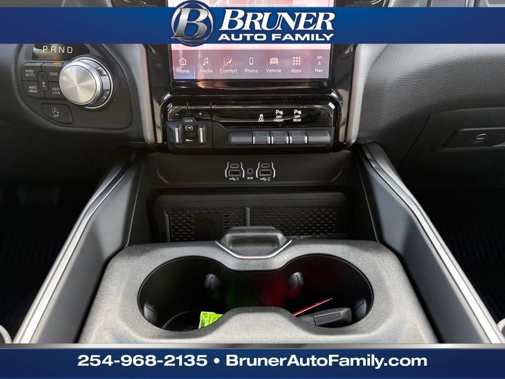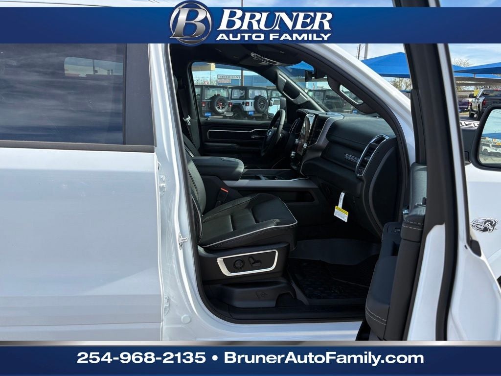 For sale in Stephenville, TX: 2026 Ram 1500 Laramie 4WD with the powerful 5.7L V8 gasoline engine — a premium full-size pickup built for towing, comfort, and confidence on and off the road. This Laramie trim pairs refined interior appointments with rugged capability: leather seating, heated/ventilated front seats, and a quiet, well-insulated cabin that makes long drives effortless. Tech and convenience are covered with Apple CarPlay and Android Auto for seamless smartphone integration, Hands Free Bluetooth® for calls and audio, Remote Start for climate-controlled comfort, and Adaptive Cruise Control for relaxed highway cruising. The 4WD system and robust V8 deliver strong towing and payload capacity, ideal for work, recreation, or daily hauling. Located in Stephenville, TX, this Ram 1500 Laramie is competitively priced and advertised as the best price in the area — exceptional value for a 2026 model with these features. Whether you need capability for the jobsite, weekend adventures, or a refined daily driver, this Ram offers a compelling mix of performance, tech, and luxury. Contact us to schedule a test drive in Stephenville and see why this 2026 Ram 1500 Laramie with 4WD and the 5.7L V8 is the smart choice for Texas drivers seeking power and comfort.