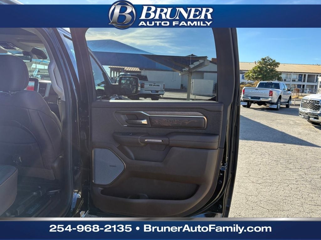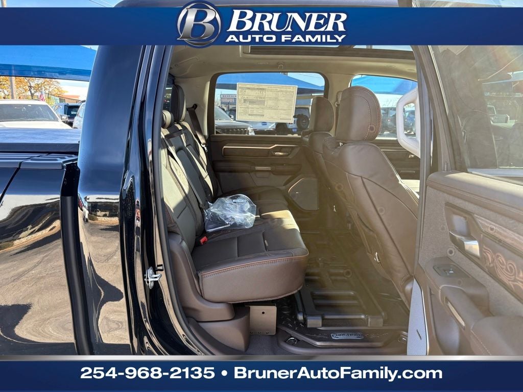Limited Level A Equipment Group: Google Android Auto; SiriusXM Radio Service; USB Host Flip; Surround View Camera System; Integrated Center Stack Radio; LED CHMSL Lamp; Tri-Fold Tonneau Cover; Integrated Voice Command with Bluetooth®; Connectivity - US/Canada; Traffic Sign Recognition; GPS Navigation; 4G LTE Wi-Fi Hot Spot; RamBox Cargo Management System; GPS Antenna Input; Hands-Free Active Driving Assist System; SiriusXM with 360L; Global Telematics Box Module; Head Up Display; Connected Travel and Traffic Services; Evasive Steer Assist; Drowsy Driver Detection; Exterior 115V AC Outlet; Intersection Collision Assist System; Apple CarPlay; Off-Road Information Pages; Disassociated Touchscreen Display; HD Radio; Smartphone as a Key Capable; 14.4" Touchscreen Display; Uconnect 5 Nav with 14.4" Display; 240 Amp Alternator; Digital Rearview Mirror; 12-Way/1-way Trailer Connector. Quick Order Package 22K Longhorn: Premium Filigree Leather Seats; Warm Chrome Key Fob; Longhorn Instrument Cluster Theme 3; Premium Door Trim Panel; Grille Surround 4 Chrome Texture 5 Chrome; Longhorn Badge. Off Road Group: Front Extra Heavy Duty Shock Absorbers; Off Road Decals; Rear Extra Heavy Duty Shock Absorbers; Steering Gear Skid Plate; Falken Brand Tires; Full Size Spare Tire; E-Locker Rear Axle; Transfer Case Skid Plate; Fuel Tank Skid Plate; 275/55R20 BSW All-Terrain Tires; Raised Ride Height; Selec-Speed Control. Bed Utility Group: Truck Bed Cargo Divider; MOPAR 4 Adjustable Cargo Tie-Down Hooks; Exterior 115V AC Outlet; MOPAR Deployable Bed Step Center Mount. Dual-Pane Panoramic Sunroof. Multi-Function Tailgate. Tri-Fold Tonneau Cover. E-Locker Rear Axle. Trailer Brake Control. Diamond Black Crystal PC. **Equipment listed is based on original vehicle build and subject to change. Please confirm the accuracy of the included equipment by calling the dealer prior to purchase.**