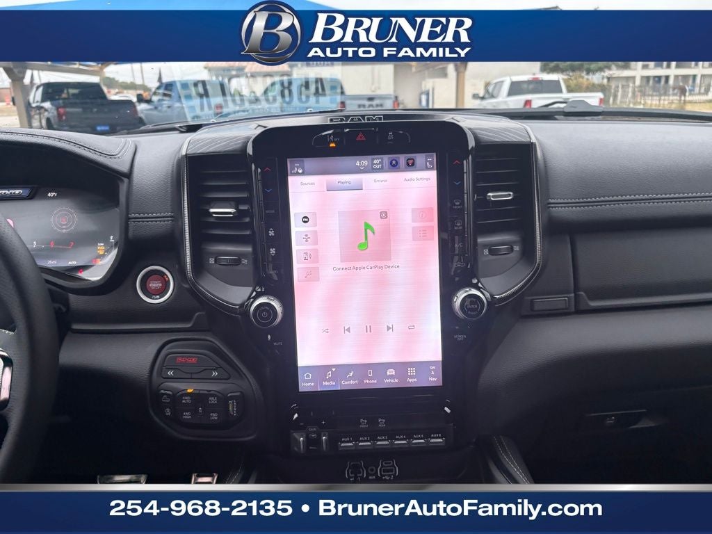 This model offers Apple CarPlay for seamless connectivity. An off-road package is equipped on this unit. This 2026 Ram 1500 has automated speed control that adjusts to maintain a safe following distance, enhancing highway driving convenience. The Ram 1500 is pure luxury with a heated steering wheel. Bluetooth® technology is built into this unit, keeping your hands on the steering wheel and your focus on the road. The leather seats in this Ram 1500 are a must for buyers looking for comfort, durability, and style. This 2026 Ram 1500 's Forward Collision Warning system alerts the driver to potential front-end collisions, enhancing safety. It comes equipped with Android Auto for seamless smartphone integration on the road. See what's behind you with the back up camera on this Ram 1500. Start this model from inside with remote start. You'll never again be lost in a crowded city or a country region with the navigation system on this Ram 1500.
