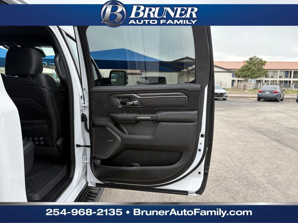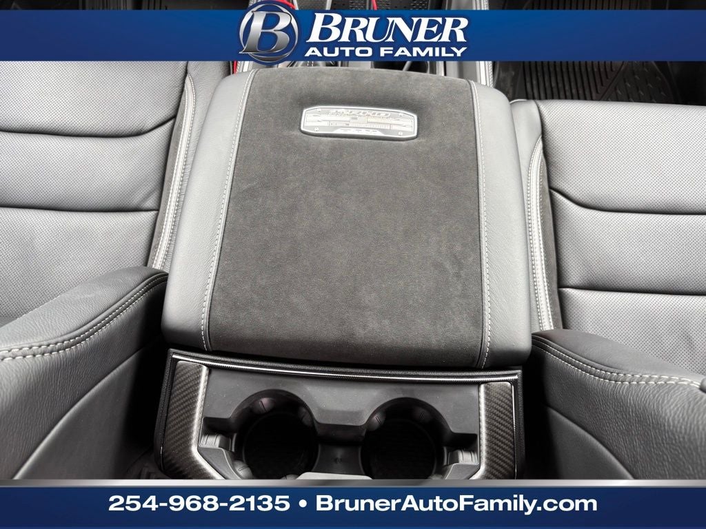 Quick Order Package 22Y RHO. RHO Level 1 Equipment Group: Full Length Premium Upgraded Floor Console; SiriusXM Radio Service; USB Host Flip; Surround View Camera System; Rain Sensitive Windshield Wipers; Integrated Center Stack Radio; LED CHMSL Lamp; Power Adjustable Pedals with Memory; Front Passenger Interactive Display; Integrated Voice Command with Bluetooth®; Connectivity - US/Canada; Traffic Sign Recognition; GPS Navigation; 4G LTE Wi-Fi Hot Spot; Hands-Free Active Driving Assist System; Front Passenger Power Seat Back Massage; Head Up Display; Connected Travel and Traffic Services; Evasive Steer Assist; Heated Second Row Seats; Drowsy Driver Detection; Driver Power Seat Back Massage; Intersection Collision Assist System; Disassociated Touchscreen Display; Leather/carbon Flat-Bottom Steering Wheel; HD Radio; Smartphone as a Key Capable; 14.4" Touchscreen Display; Driver/passenger Wrapped Assist Handles; Dual Wireless Charging Pad; Uconnect 5 Nav with 14.4" Display; Ventilated Rear Seats; Rear 60/40 Folding Split Recline Seat; 240 Amp Alternator; Ventilated Front Seats; Harman/kardon 19 Speaker Premium Sound; Premium Wrapped Instrument Panel Bezel; Exterior Mirrors with Memory; Luxury Front Door Trim Panel; Real Carbon Fiber Interior Accents; Driver Seat Memory; Power Tailgate; Radio/driver Seat/mirrors/pedals Memory; Digital Rearview Mirror; 12-Way/1-way Trailer Connector. Trailer Tow Group: Trailer Light Check; Trailer Reverse Steering Control; Trailer Tire Pressure Monitoring System. 18" X 9" Bead-Lock Aluminum Wheels. Dual-Pane Panoramic Sunroof. MOPAR Off-Road Style Running Boards. **Equipment listed is based on original vehicle build and subject to change. Please confirm the accuracy of the included equipment by calling the dealer prior to purchase.**