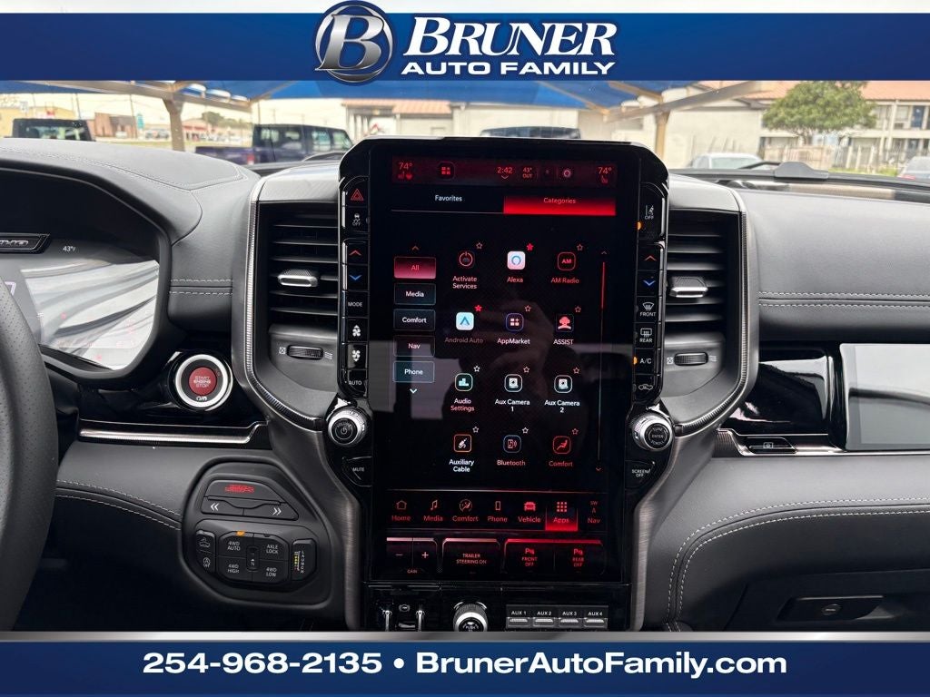 2026 Ram 1500 RHO 4WD — Located in Stephenville, TX, this rugged and refined pickup delivers capability, comfort, and cutting-edge technology at the best price in the area. Powered by a smooth and efficient 6-cylinder 3.0L gasoline engine with four-wheel drive, the Ram 1500 RHO balances towing strength and everyday drivability for work sites, weekend adventures, and daily commutes. Inside, the cabin pairs premium materials with intuitive connectivity. Apple CarPlay and Android Auto keep your smartphone integrated for navigation, music, and messaging, while Hands-Free Bluetooth® ensures safe calls on the move. The standard Back-Up Camera assists with parking and hitching trailers, and Adaptive Cruise Control enhances highway confidence by maintaining a safe following distance. This Ram 1500 RHO features robust towing and payload capabilities, advanced safety features, and a composed ride thanks to refined suspension tuning. Practical storage solutions and versatile bed configurations make hauling tools, gear, or cargo straightforward. With modern driver aids and an efficient 3.0L engine, this pickup delivers exceptional value and performance in Stephenville. Schedule a test drive today to experience the driving dynamics and comfort firsthand. Competitive pricing and local availability mean you won't find a better deal for a 2026 Ram 1500 RHO 4WD with these features in the Stephenville, TX market.