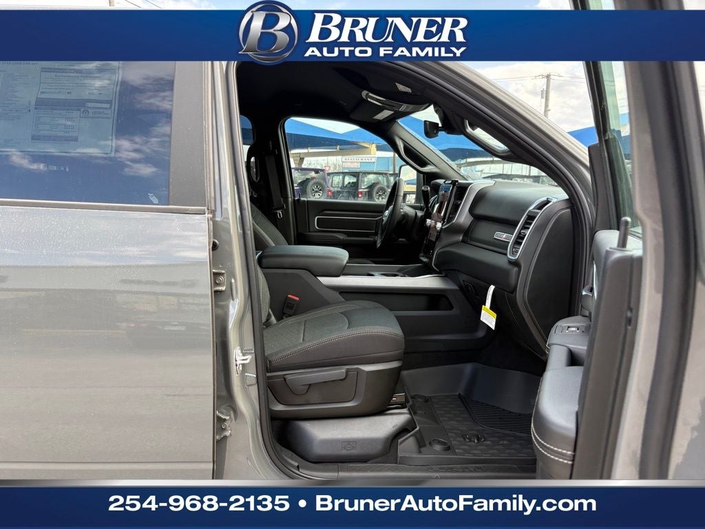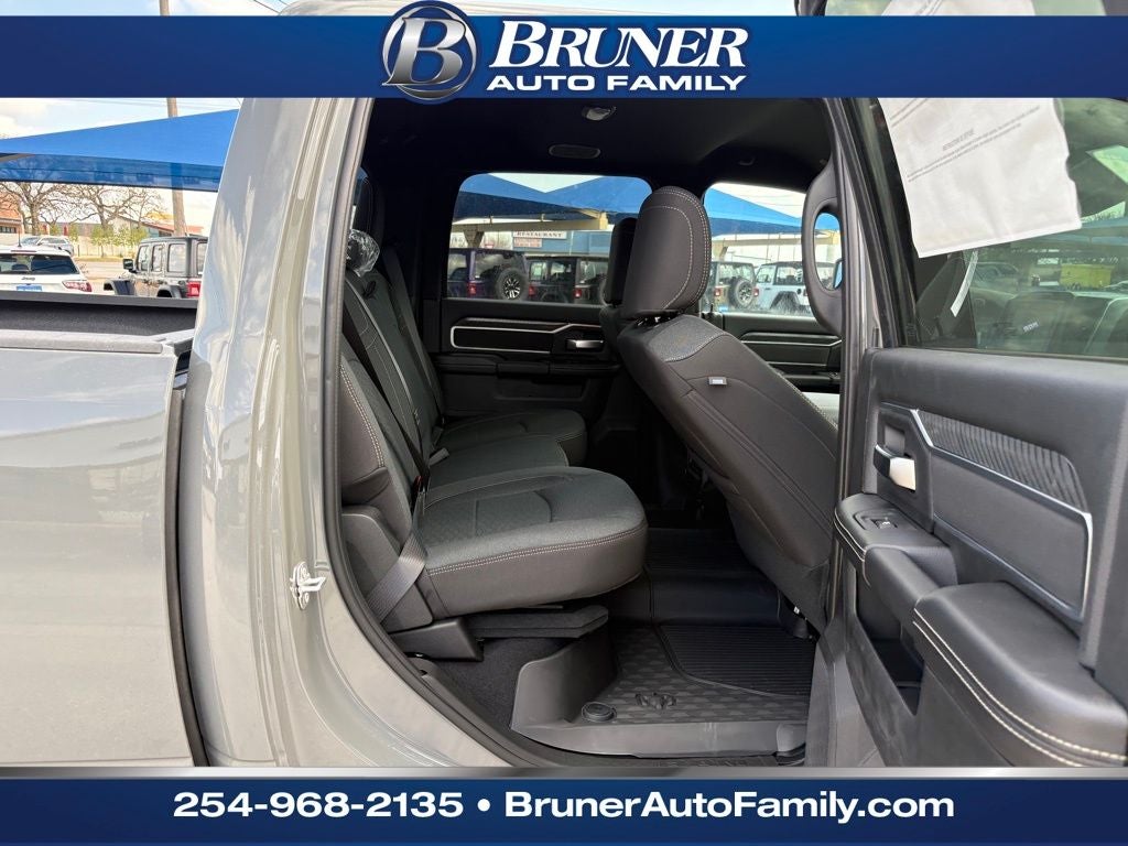 Quick Order Package 2UY Lone Star: Lone Star Badge. Night Edition: Firestone Brand Tires; Gloss Black Nostrils/mic Black Grille; LT285/60R20E OWL On/off Road Tires; Black Exterior Truck Badging; 20" X 8.0" Black Painted Aluminum Wheels; Body Color Grille-Surround; Black Interior Accents; Black Wheel Center Hub; Painted Front Bumper; Painted Rear Bumper. Big Horn Level 1 Plus Equipment Group: Google Android Auto; SiriusXM Radio Service; For Details. Visit DriveUconnect.com; For More Info. Call 800-643-2112; Integrated Voice Command with Bluetooth®; Emergency Vehicle Alert System (EVAS); Lone Star Instrument Panel Badge; 12" Touchscreen Display; Glove Box Lamp; Auto Power-Folding Mirrors; Footwell Courtesy Lamp; Anti-Spin Differential Rear Axle; Mirror Running Lights; MOPAR Deployable Bed Step; Alexa Built-In; Apple CarPlay; Power-Adjustable Convex Aux Mirrors; Forward and Reverse Utility Lights; Locking Lower Glove Box; Remote Start System; 9 Alpine Speakers with Subwoofer; Disassociated Touchscreen Display; Dual Glove Boxes; 2nd Row in Floor Storage Bins; Rear View Auto Dim Mirror; Rear Dome with On/off Switch Lamp; LED Bed Lighting; Connectivity - US/Canada; GPS Navigation; 4G LTE Wi-Fi Hot Spot; GPS Antenna Input; Exterior Mirrors with Heating Element; SiriusXM with 360L; Global Telematics Box Module; Connected Travel and Traffic Services; Foam Bottle Insert (door Trim Panel); Black Exterior Mirrors; Off-Road Info Pages; Selectable Tire Fill Alert; Trailer Tow Pages; HD Radio; Uconnect 5 Navigation with 12.0" Display Radio; Power Heated Folding Telescopic Mirrors; Exterior Mirrors with Supplemental Signals; Steering Wheel Mounted Audio Controls; Exterior Mirrors Courtesy Lamps; Air Conditioning ATC with Dual Zone Control; MOPAR Spray in Bedliner; Power Adjust Mirrors; Luxury Steering Wheel; Power Telescoping Mirrors. Heated Seats and Wheel Group: Heated Front Seats; Heated Steering Wheel. Painted Flat Wheel-To-wheel Side Steps. Anti-Spin Differential Rear Axle. Premium Cloth Bucket Seats. Remote Start System. MOPAR Front and Rear Rubber Floor Mats. Clearance Lamps. Power 2-Way Driver Lumbar Adjust. Transfer Case Skid Plate Shield. **Equipment listed is based on original vehicle build and subject to change. Please confirm the accuracy of the included equipment by calling the dealer prior to purchase.**