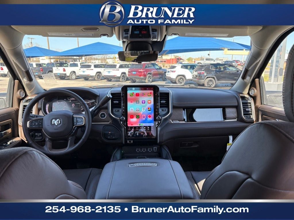 Quick Order Package 24K Longhorn: Luxury Front and Rear Floor Mats; Longhorn Instrument Cluster Theme 3; Premium Door Trim Panel; Premium Filigree Leather Seats; I/P Aluminum Litho Bezels with Real Wood #1; Longhorn Badge. Longhorn Level 1 Equipment Group: Active Lane Management System; Center Stop Lamp with Cargo View Camera; MOPAR Trailer Camera Wiring with No Camera; Surround View Camera System; LED Bed Lighting; Power Deployable Running Boards; Traffic Sign Recognition; Trailer Tire Pressure Monitoring System; Adaptive Steering System; MOPAR Spray in Bedliner; Drowsy Driver Detection; Trailer Reverse Guidance; Digital Rearview Mirror. Dual Rear Wheels: Clearance Lamps; 17" Steel Spare Wheel; Box and Rear Fender Clearance Lamps; Vendor Painted Cargo Box; 6. 000 lbs Front Axle with Hub Extension; Pickup Box; 17" X 6.0" Polished Aluminum Wheels; Nexen Brand Tires; 14. 000 lbs GVWR; Center Hub; Dual Rear Wheel Fender Flare Tracking; Vendor Painted Cargo Box Tracking. LT235/80R17E Off Road Tires. MOPAR Trailer Camera Wiring with No Camera. 5th Wheel/gooseneck Towing Prep Group. Clearance Lamps. Transfer Case Skid Plate Shield. **Equipment listed is based on original vehicle build and subject to change. Please confirm the accuracy of the included equipment by calling the dealer prior to purchase.**