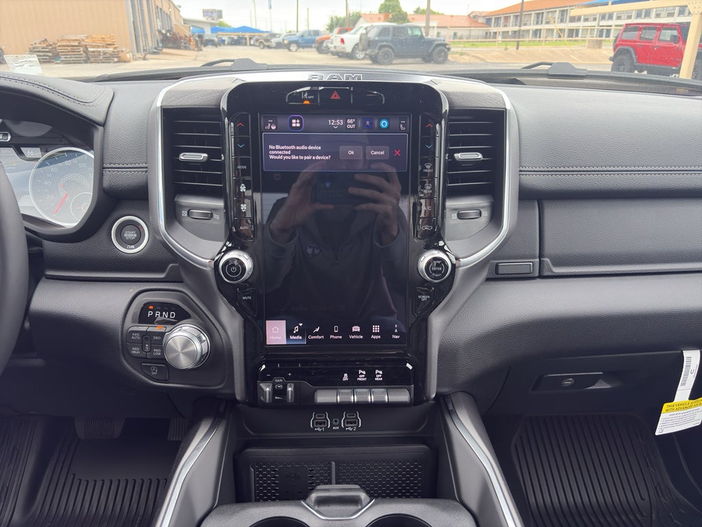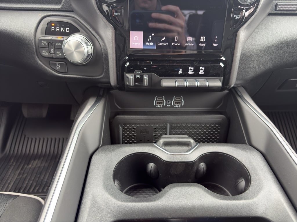 The leather seats in this 2026 Ram 1500 are a must for buyers looking for comfort, durability, and style. This 2026 Ram 1500 offers Android Auto for seamless smartphone integration. This model's Forward Collision Warning system alerts the driver to potential front-end collisions, enhancing safety. Protect the Ram 1500 from unwanted accidents with a cutting edge backup camera system. Start the vehicle from inside with remote start. The installed navigation system will keep you on the right path. Bluetooth® technology is built into this model, keeping your hands on the steering wheel and your focus on the road. The Ram 1500 offers Apple CarPlay for seamless connectivity. This 2026 Ram 1500 offers Automatic Climate Control for personalized comfort. This Ram 1500 has automated speed control that adjusts to maintain a safe following distance, enhancing highway driving convenience. The Ram 1500 is pure luxury with a heated steering wheel. The vehicle emanates grace with its stylish gray exterior.