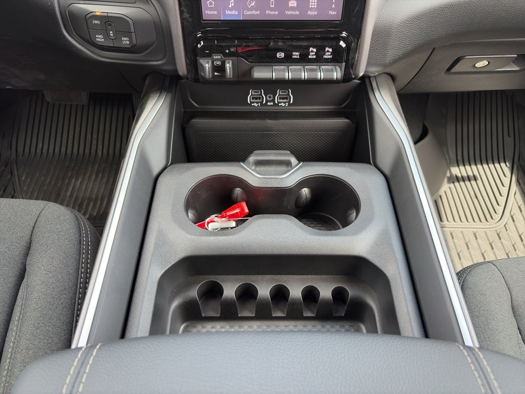 Quick Order Package 24Y Lone Star: Lone Star Badge. Night Edition: Firestone Brand Tires; Gloss Black Nostrils/mic Black Grille; LT285/60R20E OWL On/off Road Tires; Black Exterior Truck Badging; 20" X 8.0" Black Painted Aluminum Wheels; Body Color Grille-Surround; Black Interior Accents; Black Wheel Center Hub; Painted Front Bumper; Painted Rear Bumper. Big Horn Level 1 Plus Equipment Group: Google Android Auto; SiriusXM Radio Service; For Details. Visit DriveUconnect.com; For More Info. Call 800-643-2112; Integrated Voice Command with Bluetooth®; Emergency Vehicle Alert System (EVAS); Lone Star Instrument Panel Badge; 12" Touchscreen Display; Glove Box Lamp; Auto Power-Folding Mirrors; Footwell Courtesy Lamp; Anti-Spin Differential Rear Axle; Mirror Running Lights; MOPAR Deployable Bed Step; Alexa Built-In; Apple CarPlay; Power-Adjustable Convex Aux Mirrors; Forward and Reverse Utility Lights; Locking Lower Glove Box; Remote Start System; 9 Alpine Speakers with Subwoofer; Disassociated Touchscreen Display; Dual Glove Boxes; 2nd Row in Floor Storage Bins; Rear View Auto Dim Mirror; Rear Dome with On/off Switch Lamp; LED Bed Lighting; Connectivity - US/Canada; GPS Navigation; 4G LTE Wi-Fi Hot Spot; GPS Antenna Input; Exterior Mirrors with Heating Element; SiriusXM with 360L; Global Telematics Box Module; Connected Travel and Traffic Services; Foam Bottle Insert (door Trim Panel); Black Exterior Mirrors; Off-Road Info Pages; Selectable Tire Fill Alert; Trailer Tow Pages; HD Radio; Uconnect 5 Navigation with 12.0" Display Radio; Power Heated Folding Telescopic Mirrors; Exterior Mirrors with Supplemental Signals; Steering Wheel Mounted Audio Controls; Exterior Mirrors Courtesy Lamps; Air Conditioning ATC with Dual Zone Control; MOPAR Spray in Bedliner; Power Adjust Mirrors; Luxury Steering Wheel; Power Telescoping Mirrors. Heated Seats and Wheel Group: Heated Front Seats; Heated Steering Wheel. Quick Order Package 2UY Lone Star: Lone Star Badge. Painted Flat Wheel-To-wheel Side Steps. 5th Wheel/gooseneck Towing Prep Group. Anti-Spin Differential Rear Axle. Premium Cloth Bucket Seats. Remote Start System. MOPAR Front and Rear Rubber Floor Mats. Clearance Lamps. Power 2-Way Driver Lumbar Adjust. Transfer Case Skid Plate Shield. **Equipment listed is based on original vehicle build and subject to change. Please confirm the accuracy of the included equipment by calling the dealer prior to purchase.**