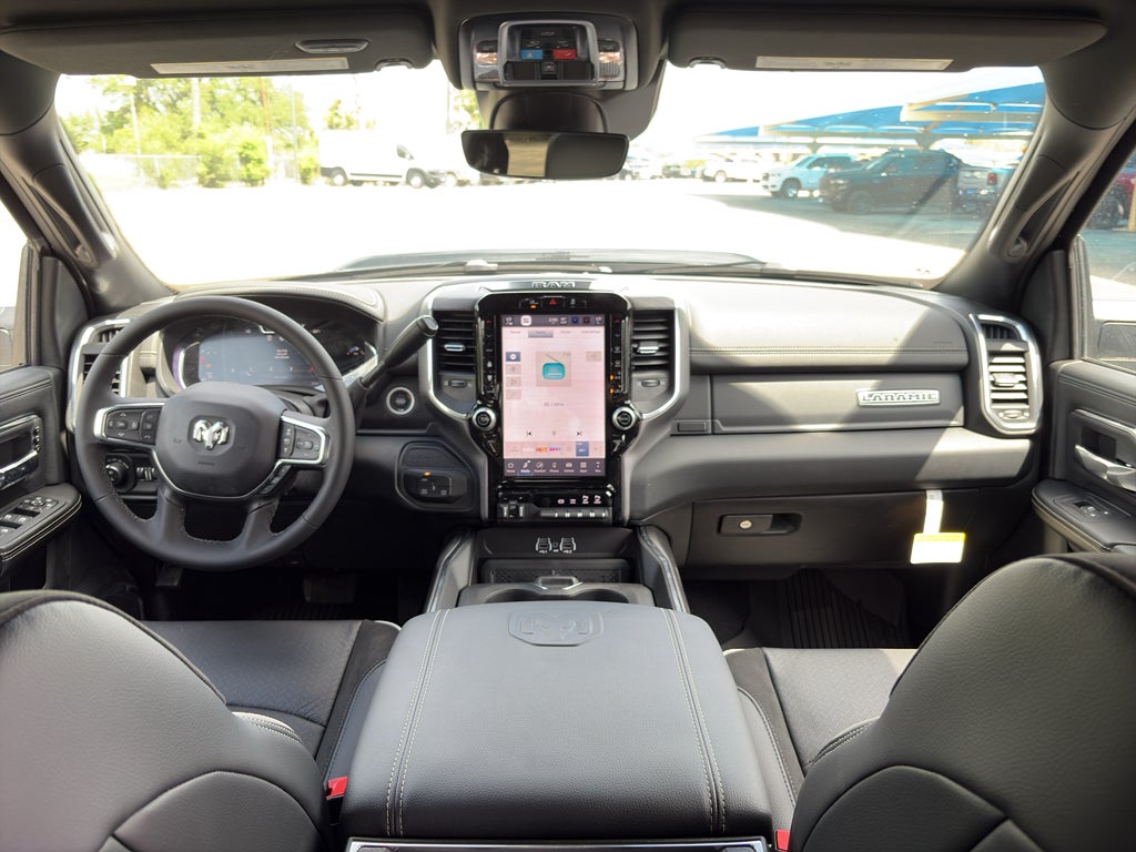 Quick Order Package 24H Laramie. Night Edition. Laramie Level 1 Plus Equipment Group: Center Stop Lamp with Cargo View Camera; Rain Sensitive Windshield Wipers; Power Adjustable Pedals with Memory; LED Bed Lighting; Traffic Sign Recognition; Auto Power-Folding Mirrors; Adaptive Steering System; Exterior Mirrors with Heating Element; Auto Dimming Exterior Mirrors; Drowsy Driver Detection; Mirror Running Lights; MOPAR Deployable Bed Step; Foam Bottle Insert (door Trim Panel); Power-Adjustable Convex Aux Mirrors; Active Lane Management System; Forward and Reverse Utility Lights; Leather Trimmed Bucket Seats; Power Heat Fold Memory Telescopic Mirrors; Exterior Mirrors with Supplemental Signals; Exterior Mirrors Courtesy Lamps; MOPAR Spray in Bedliner; Remote Tailgate Release; Auto High Beam Headlamp Control; Chrome Exterior Mirrors; Exterior Mirrors with Memory; Power Adjust Mirrors; 2nd Row in Floor Storage Bins; Power Telescoping Mirrors; Auto Dimming Exterior Passenger Mirror; Auto Adjust in Reverse Exterior Mirrors. Dual Rear Wheels: Clearance Lamps; LT235/80R17E BSW All Season Tires; 17" Steel Spare Wheel; Box and Rear Fender Clearance Lamps; Center Hub; 6000# Front Axle with Hub Extension; Nexen Brand Tires; 14. 000 Lb GVWR. Painted Flat Cab-Length Side Steps. 5th Wheel/gooseneck Towing Prep Group. Leather Trimmed Bucket Seats. Center Stop Lamp with Cargo View Camera. 50 Gallon Fuel Tank. Diamond Black Crystal PC. MOPAR Front and Rear Rubber Floor Mats. Clearance Lamps. Transfer Case Skid Plate Shield. **Equipment listed is based on original vehicle build and subject to change. Please confirm the accuracy of the included equipment by calling the dealer prior to purchase.**