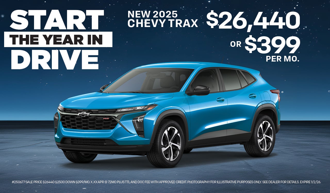 2025 Trax $26,440 or $399/mo #250677 Sale Price $26440 $2500 down $399/mo. X.XX APR @ 72mo plus TTL and Doc fee with approved credit. Photography for illustrative purposes only. See dealer for details. Expire 2/2/26.