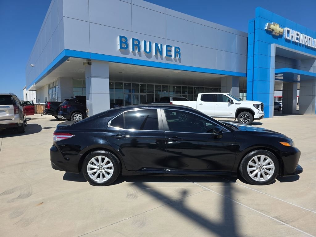 2020 Toyota Camry LEThis 2020 Toyota Camry LE in Midnight Black Metallic is a fuel-efficient and reliable sedan, perfect for commuting around Brownwood, Early, and Comanche. Known for its longevity and smooth ride, this Camry is ready for its next owner at Bruner Auto Group.Vehicle HighlightsEfficiency: Excellent fuel economy with an EPA-estimated 28 City / 39 Highway MPG.Technology: Stay connected with Apple CarPlay and Android Auto integration.Safety: Equipped with Toyota Safety Sense, including Active Cruise Control, Auto High-beam Headlights, and a Backup Camera.Comfort: Features a spacious Black cloth interior with a power driver seat and dual-zone climate control.Key Features & OptionsPerformance: 2.5L I4 DOHC 16V engine paired with a smooth 8-speed automatic transmission.Exterior: Sleek Midnight Black Metallic finish with 17 alloy wheels and a rear spoiler.Interior: Fabric seat trim, split-folding rear seats, and a leather-wrapped steering wheel with mounted audio controls.Convenience: Remote keyless entry, power windows/locks, and heated power door mirrors.Condition NoteThis vehicle has been inspected by our team. Please note the following:Passed detailed safety inspection.Minor cosmetic hail on hood and roof.Front bumper shows minor wear consistent with mileage.Recent maintenance includes new front tires.Why Buy from Bruner Auto Group in Brownwood?Located conveniently in Brownwood, TX, Bruner Auto Group has been serving the central Texas community for years. We pride ourselves on transparency and a stress-free buying experience. Whether you are coming from Bangs, Coleman, or Goldthwaite, we are your local destination for quality pre-owned Toyotas.Stop by today for a test drive and see why the Toyota Camry remains a top choice for Texas drivers!