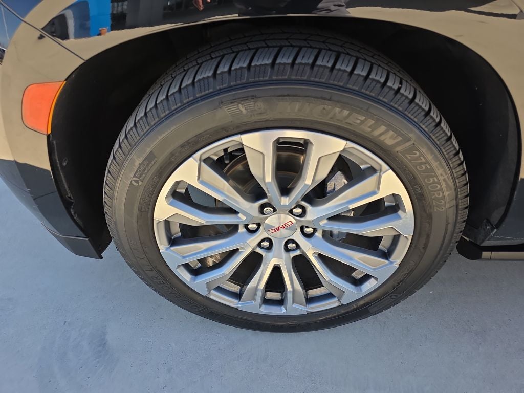 - Preferred Equipment Group 5SA: Bright Front and Rear Door Sill Plates; 2 Presets For Outside Rearview Mirrors; 12-Way Power Seat Adjusters; 3rd Row 60/40 Power-Folding Split-Bench Seat; Safety Alert Seat; Chrome Door Handles with Body-Color Strip; Hill Descent Control; Heated Automatic Steering Wheel; Heated Driver and Front Passenger Seats; Universal Home Remote; Heated 2nd Row Outboard Position Seats; Hands-Free Power Programmable Rear Liftgate; 2-Speed Electronic Autotrac Active Transfer Case; GMC Pro Safety Plus; Dual Exhaust System; AM/FM/SiriusXM Radio with Navigation; HD Surround Vision; Heated and Ventilated Driver and Front Passenger Seats; Power Tilt and Telescopic Steering Column; 15" Diagonal Multi-Color Head-Up Display; Rear Pedestrian Alert; Magnetic Ride Control Suspension; Inside Rearview Auto-Dimming Mirror; Power Release 2nd Row Bucket Seats; Outside Heated Power-Adjustable Mirrors; Galvano Bodyside Moldings
