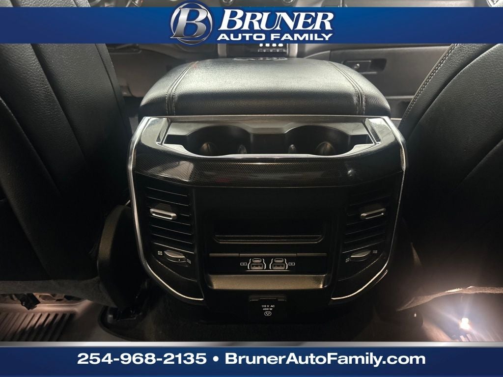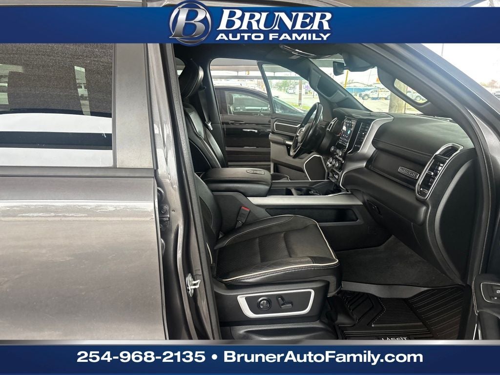 Laramie Level II Equipment Group (2nd Row In Floor Storage Bins, 4G LTE Wi-Fi Hot Spot, 8.4 Touchscreen Display, All R1 High Radios, All Radio Equipped Vehicles, Apple CarPlay, Auto High Beam Headlamp Control, Blind Spot & Cross Path Detection, Connected Travel & Traffic Services, Connectivity - US/Canada, Disassociated Touchscreen Display, Foam Bottle Insert (Door Trim Panel), For Details, Visit DriveUconnect.com, For More Info, Call 800-643-2112, Global Telematics Box Module (TBM), Google Android Auto, GPS Antenna Input, GPS Navigation, harman/kardon 19 Speaker Premium Sound, HD Radio, Integrated Center Stack Radio, Integrated Voice Command w/Bluetooth®, ParkSense Front/Rear Park Assist w/Stop, Radio: Uconnect 5 Nav w/8.4 Display, Rain Sensitive Windshield Wipers, Remote Tailgate Release, SiriusXM Radio Service, SiriusXM w/360L, USB Host Flip, and Wireless Charging Pad), Night Edition (#1 Seat Foam Cushion, 3 Rear Seat Head Restraints, 4 Way Front Headrests, Accent Color Premium Power Mirrors, Anti-Spin Differential Rear Axle, Auto-Dimming Exterior Driver Mirror, Black Exterior Truck Badging, Black Headlamp Bezels, Black Interior Accents, Black Painted Exterior Mirrors Caps, Body Color Door Handles, Body Color Front Bumper, Body Color Rear Bumper w/Step Pads, Bucket Seats, Convex Wide-Angle Mirror Insert, Delete LED Lamp - Floor Console Bin, Driver Seat Memory, Dual Exhaust w/Black Tips, Exterior Mirrors Courtesy Lamps, Exterior Mirrors w/Heating Element, Exterior Mirrors w/Memory, Exterior Mirrors w/Supplemental Signals, Front Seat Back Map Pockets, Full Length Upgraded Floor Console, Grille Surround 3 Black Texture 2 Black, Heated Front Seats, Heated Steering Wheel, Leather Trimmed Bucket Seats, Mopar Black Tubular Side Steps, Power 2-Way Driver Lumbar Adjust, Power 2-Way Passenger Lumbar Adjust, Power 8-Way Driver & Passenger Seats, Power-Folding Mirrors, Rear 60/40 Folding Seat, Sport Performance Hood, Twill Film Appliques, Ventilated Front Seats, and Wheels: 22 x 9 Forged Aluminum), Quick Order Package 25H Laramie, 10 Speakers, 3.21 Rear Axle Ratio, 4-Wheel Disc Brakes, 48V Belt Starter Generator, ABS brakes, Adjustable pedals, Air Conditioning, Alloy wheels, AM/FM radio, Apple CarPlay/Android Auto, Audio memory, Auto-dimming door mirrors, Auto-dimming Rear-View mirror, Automatic temperature control, Brake assist, Bumpers: chrome, Chrome Exterior Mirrors, Compass, Delay-off headlights, Driver door bin, Driver vanity mirror, Dual front impact airbags, Dual front side impact airbags, Electronic Stability Control, Exterior Parking Camera Rear, Front anti-roll bar, Front Center Armrest w/Storage, Front dual zone A/C, Front fog lights, Front License Plate Bracket, Front reading lights, Front wheel independent suspension, Fully automatic headlights, Garage door transmitter, Heated door mirrors, Heated front seats, Heated steering wheel, Illuminated entry, Leather steering wheel, Leather Trim 40/20/40 Bench Seat, Low tire pressure warning, Manufacturer's Statement of Origin, Memory seat, MOPAR Front & Rear Rubber Floor Mats, Occupant sensing airbag, Outside temperature display, Overhead airbag, Overhead console, Panic alarm, Passenger door bin, Passenger vanity mirror, Pedal memory, Power door mirrors, Power driver seat, Power passenger seat, Power steering, Power windows, Radio data system, Radio: Uconnect 5 W w/8.4 Display, Rear anti-roll bar, Rear seat center armrest, Rear step bumper, Rear window defroster, Remote keyless entry, Security system, Speed control, Split folding rear seat, Steering wheel mounted audio controls, Tachometer, Telescopin