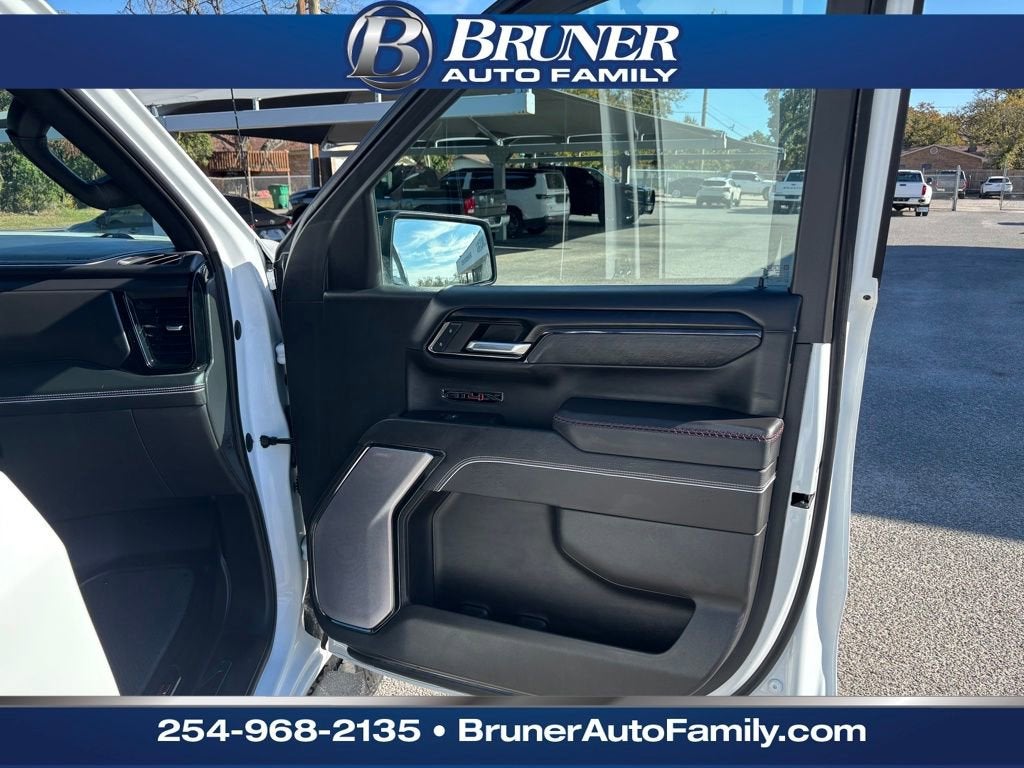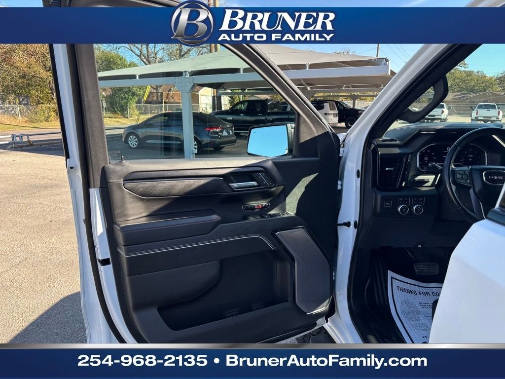 Preferred Equipment Group 4SG (120-Volt Bed Mounted Power Outlet, 120-Volt Instrument Panel Power Outlet, 2 Charge/Data USB Ports Inside Center Console, 2 Type-C Charge-Only Rear USB Ports, 2 USB Ports, Bed View Camera, Bose Premium Series w/12-Speaker System, Color-Keyed Carpeting Floor Covering, Compass, Deep-Tinted Glass, Driver-Selectable Full-Locking Front Differential, Driver-Selectable Full-Locking Rear Differential, Electric Rear-Window Defogger, Electrical Steering Column Lock, Floor-Mounted Center Console, Front Prem Floor Liners w/Removable Carpet Insert, Front Rainsensing Wipers, Gloss Black Header w/Drk Nickel Grille Insert Bars, GMC Connected Access Capable, HD Surround Vision, Heated 2nd Row Outboard Seats, Heated Driver & Front Outboard Passenger Seating, Heavy-Duty Air Filter, Hill Descent Control, Hitch Guidance w/Hitch View, In-Vehicle Trailering App, Integrated Trailer Brake Controller, Keyless Open & Start, LED Cargo Area Lighting, Multicolor 15 Diagonal Head-Up Display, MultiPro Audio System by Kicker (LPO), OnStar & GMC Connected Services Capable, Perimeter Lighting, Power Door Locks, Power Front Passenger Windows w/Express Up/Down, Power Front Windows w/Driver Express Up/Down, Power Rake & Telescoping Steering Column, Power Rear Windows w/Express Down, Power Sliding Rear Window w/Rear Defogger, Power Sunroof, Push Button Start, Rear Cross Traffic Braking, Rear Pedestrian Detection, Rear Prem Floor Liners w/Removable Carpet Insert, Rear Wheelhouse Liners, Remote Vehicle Starter System, SiriusXM w/360L, Spray-On Pickup Bed Liner w/AT4X Logo, Steering Wheel Audio Controls, Theft Deterrent System (Unauthorized Entry), Trailer Camera Provisions, Trailer Side Blind Zone Alert, Trailer Tire Pressure Monitor System, Ultrasonic Front & Rear Park Assist, Universal Home Remote, Ventilated Driver & Front Passenger Seats, Wi-Fi Hotspot Capable, Wireless Charging, and Wireless Phone Projection), Trailering Package (Hitch Guidance), GMC Certified Pre-Owned Certified, 10-Speed Automatic, 4WD, Obsidian Rush Leather, 12 Speakers, 16-Way Power Driver Seat Adjuster w/Lumbar, 16-Way Power Passenger Seat Adjuster w/Lumbar, 3.23 Rear Axle Ratio, 4-Wheel Disc Brakes, ABS brakes, Air Conditioning, Alloy wheels, AM/FM radio, Apple CarPlay/Android Auto, Auto High-beam Headlights, Auto-dimming door mirrors, Auto-dimming Rear-View mirror, Automatic Emergency Braking, Automatic temperature control, Brake assist, Buckle to Drive, Delay-off headlights, Driver door bin, Driver Memory, Driver vanity mirror, Dual front impact airbags, Dual front side impact airbags, Electronic Stability Control, Emergency communication system: OnStar and GMC connected services capable, Following Distance Indicator, Forward Collision Alert, Front anti-roll bar, Front Bucket Seats, Front Center Armrest, Front dual zone A/C, Front fog lights, Front License Plate Kit, Front Pedestrian Braking, Front rea