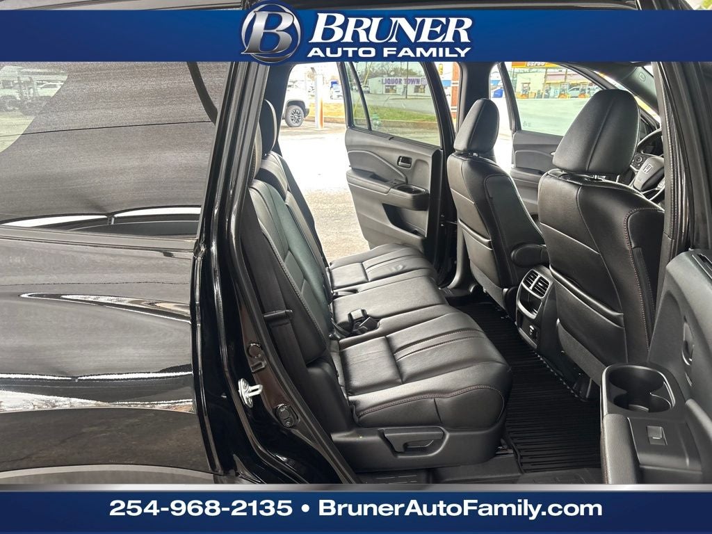 4-Wheel Disc Brakes, 4.334 Axle Ratio, 7 Speakers, A/V remote: CabinControl, ABS brakes, Air Conditioning, Alloy wheels, AM/FM radio: SiriusXM, Apple CarPlay/Android Auto, Auto High-beam Headlights, Auto-dimming Rear-View mirror, Automatic temperature control, Blind Spot Information (BSI) System warning, Brake assist, Bumpers: body-color, Compass, Delay-off headlights, Driver door bin, Driver vanity mirror, Driver's Seat Mounted Armrest, Dual front impact airbags, Dual front side impact airbags, Electronic Stability Control, Emergency communication system: HondaLink Assist, Exterior Parking Camera Rear, Four wheel independent suspension, Front anti-roll bar, Front Bucket Seats, Front Center Armrest, Front dual zone A/C, Front fog lights, Front reading lights, Fully automatic headlights, Garage door transmitter: HomeLink, Heated door mirrors, Heated Front Bucket Seats, Heated front seats, Illuminated entry, Lane departure: Lane Keeping Assist System (LKAS) active, Leather-Trimmed Seats, Low tire pressure warning, Navigation system: Honda Satellite-Linked Navigation System, Occupant sensing airbag, Outside temperature display, Overhead airbag, Overhead console, Panic alarm, Passenger door bin, Passenger seat mounted armrest, Passenger vanity mirror, Power door mirrors, Power driver seat, Power Liftgate, Power moonroof, Power passenger seat, Power steering, Power windows, Radio data system, Radio: 215-Watt Audio System w/7 Speakers, Rear air conditioning, Rear anti-roll bar, Rear reading lights, Rear seat center armrest, Rear window defroster, Rear window wiper, Remote keyless entry, Roof rack: rails only, Security system, Speed control, Speed-sensing steering, Split folding rear seat, Spoiler, Steering wheel mounted audio controls, Tachometer, Telescoping steering wheel, Tilt steering wheel, Traction control, Trip computer, Turn signal indicator mirrors, Variably intermittent wipers, and Wheels: 18 Machine-Finish Alloy.