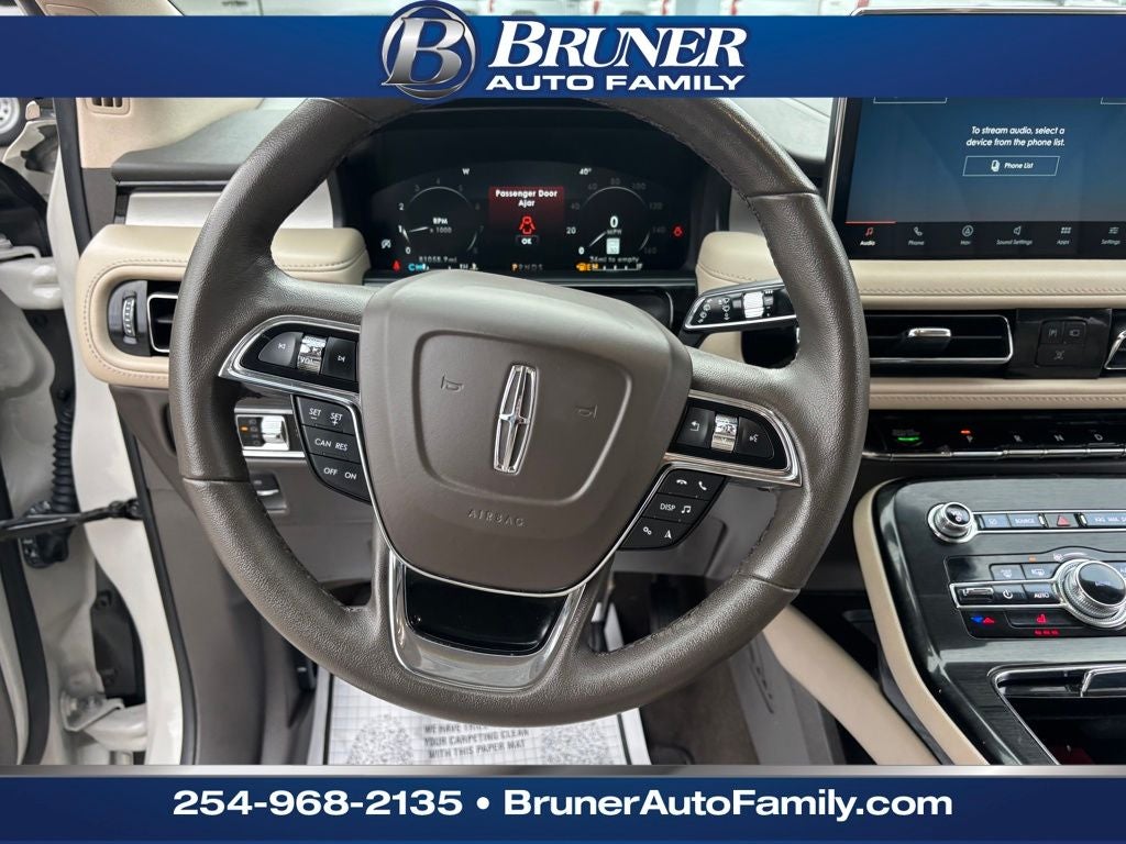 Equipment Group 100A, Premium Package (Connected Build-In Navigation, Power Tilt/Telescoping Steering Column w/Memory, and Universal Garage Door Opener), 10 Speakers, 3.80 Axle Ratio, 4-Wheel Disc Brakes, ABS brakes, Air Conditioning, Alexa Built-In, Alloy wheels, AM/FM Radio, AM/FM radio: SiriusXM with 360L, Auto High-beam Headlights, Auto-dimming Rear-View mirror, Automatic temperature control, Brake assist, Bumpers: body-color, Compass, Delay-off headlights, Driver door bin, Driver vanity mirror, Dual front impact airbags, Dual front side impact airbags, Electronic Stability Control, Emergency communication system: 911 Assist, Four wheel independent suspension, Front anti-roll bar, Front Bucket Seats, Front Center Armrest w/Storage, Front dual zone A/C, Front reading lights, Fully automatic headlights, Heated door mirrors, Heated front seats, Heated Lincoln Soft-Touch Front Comfort Seats, Illuminated entry, Knee airbag, Leather steering wheel, Low tire pressure warning, Memory seat, Occupant sensing airbag, Outside temperature display, Overhead airbag, Overhead console, Panic alarm, Passenger door bin, Passenger vanity mirror, Power door mirrors, Power driver seat, Power Liftgate, Power passenger seat, Power steering, Power windows, Radio data system, Rear anti-roll bar, Rear reading lights, Rear seat center armrest, Rear window defroster, Rear window wiper, Remote keyless entry, Satin Roof Rack Side Rails w/o Crossbars, Security system, Speed control, Speed-sensing steering, Speed-Sensitive Wipers, Split folding rear seat, Spoiler, Steering wheel mounted A/C controls, Steering wheel mounted audio controls, SYNC 4 w/Enhanced Voice Recognition, Tachometer, Telescoping steering wheel, Tilt steering wheel, Traction control, Trip computer, Turn signal indicator mirrors, Variably intermittent wipers, and Wheels: 18 Premium Painted Bright Machined Alum.