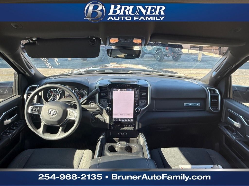 Level 1 Equipment Group (2 Way Rear Headrest Seat, 2nd Row In Floor Storage Bins, 4 Way Front Headrests, 40/20/40 Split Bench Seat, 4G LTE Wi-Fi Hot Spot, 8.4 Touchscreen Display, Apple CarPlay, Auto Power-Folding Mirrors, Big Horn IP Badge, Black Exterior Mirrors, Bluetooth® Handsfree Phone & Audio, Center Hub, Connectivity - US/Canada, Dual Glove Boxes, Exterior Mirrors Courtesy Lamps, Exterior Mirrors w/Heating Element, Exterior Mirrors w/Supplemental Signals, Foam Bottle Insert (Door Trim Panel), Footwell Courtesy Lamp, For Details, Visit DriveUconnect.com, For More Info, Call 800-643-2112, Forward & Reverse Utility Lights, Front Armrest w/Cupholders, Front Center Seat Cushion Storage, Front Fog Lamps, Front Seat Back Map Pockets, Global Telematics Box Module (TBM), Glove Box Lamp, Google Android Auto, GPS Antenna Input, Integrated Center Stack Radio, Integrated Voice Command w/Bluetooth®, Leather Wrapped Steering Wheel, Locking Lower Glove Box, Manual Adjust 4-Way Front Passenger Seat, Mirror Running Lights, Power 2-Way Driver Lumbar Adjust, Power Adjust 8-Way Driver Seat, Power Adjust Mirrors, Power Adjustable Convex Aux Mirrors, Power Heated Fold Telescope Mirrors, Power Telescoping Mirrors, Rear 60/40 Folding Seat, Rear Dome w/On/Off Switch Lamp, Remote USB Port - Charge Only, Selectable Tire Fill Alert, SiriusXM Radio Service, SiriusXM Satellite Radio, Steering Wheel Mounted Audio Controls, Storage Tray, and Wheels: 18 x 8.0 Polished Aluminum), Night Edition (Black Exterior Truck Badging, Black Headlamp Bezels, Black Interior Accents, Black Ram Head Tailgate Badge, Black Tail Lamp Bezels, Black Wheel Center Hub, Body Color Door Handles, Body Color Grille Surround, Gloss Black Nostrils/MIC Black Grille, Painted Front Bumper, Painted Rear Bumper, ParkSense Front/Rear Park Assist System, and Wheels: 20 x 8.0 Black Painted Aluminum), Protection Group (Tow Hooks), Quick Order Package 2HZ Big Horn, 115V Auxiliary Front Power Outlet, 12 Touchscreen Display, 3.73 Axle Ratio, 4-Wheel Disc Brakes, 400W Inverter, 6 Speakers, 9 Alpine Speakers w/Subwoofer, ABS brakes, Active Noise Control System, Air Conditioning, Air Conditioning ATC w/Dual Zone Control, Alexa Built-In, All R1 High Radios, All Radio Equipped Vehicles, Anti-Spin Differential Rear Axle, Brake assist, Bumpers: chrome, Center Stack Storage Drawer, Clearance Lamps, Cloth 40/20/40 Bench Seat, Compass, Connected Travel & Traffic Services, CTR Stop Lamp w/Cargo View Camera, Delay-off headlights, Disassociated Touchscreen Display, Driver door bin, Dual front impact airbags, Dual front side impact airbags, Electronic Stability Control, Electronically Controlled Throttle, Emergency communication system: SiriusXM Guardian, Exterior 115V AC Outlet, Front anti-roll bar, Front Center Armrest w/Storage, Front License Plate Bracket, Front reading lights, Fully automatic headlights, GPS Navigation, HD Radio, Heated door mirrors, Illuminated entry, Low tire pressure warning, Manual Adjust 4-Way Driver Seat, MOPAR Front & Rear Rubber Floor Mats, MOPAR Spray In Bedliner, Occupant sensing airbag, Off-Road Information Pages, Outside temperature display, Overhead airbag, Overhead console, Panic alarm, ParkView Rear Back-Up Camera, Passenger door bin, Passenger vanity mirror, Power door mirrors, Power steering, Power windows, Premium Cloth 40/20/40 Bench Seat (DISC), Radio data system, Radio: Uconnect 3 w/5 Display, Radio: Uconnect 5 Nav w/12.0 Display, Radio: Uconnect 5 W w/8.4 Display, Rear anti-roll bar, Rear Folding Seat, Rear seat center armrest, Rear step bumper, Rear Wheelhous