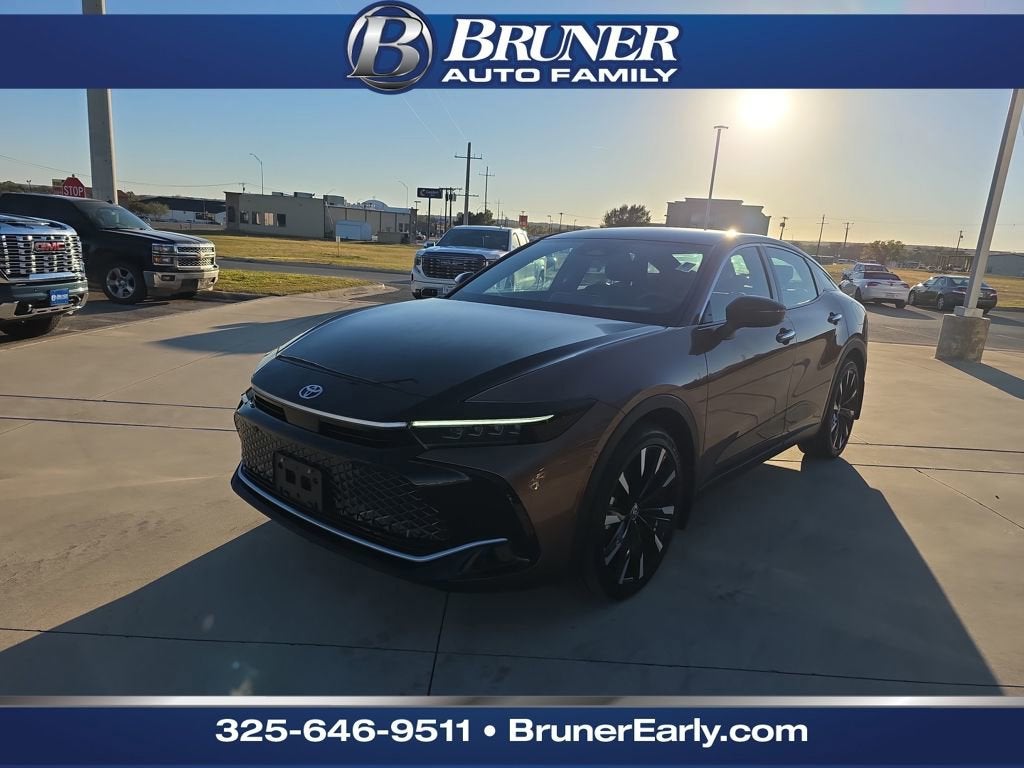 Certified 2024 Toyota Crown Platinum AWD: Hybrid MAX Performance Near Brownwood!Experience the pinnacle of Toyota innovation with this CARFAX One-Owner, Toyota Certified 2024 Toyota Crown Platinum. This flagship sedan breaks the mold, combining the executive luxury of a premium sedan with the elevated ride height of a crossover and the exhilarating power of the Hybrid MAX powertrain. A perfect fit for drivers in Brownwood, Early, and Central Texas, this All-Wheel Drive (AWD) masterpiece offers a sophisticated driving experience without compromising on Texas-sized capability.Finished in the striking two-tone Bronze Age/Black exterior with a premium Black leather interior, this Crown is in exceptional condition with only 10,424 mileswell below the market average!Toyota Certified Gold: Reliability You Can Trust This Crown isn't just a used car; its Toyota Gold Certified, providing industry-leading protection for your peace of mind in Brown County:Limited Comprehensive Warranty: 12 Months / 12,000 Miles from the date of certified purchase.Limited Powertrain Warranty: 7 Years / 100,000 Total Vehicle Miles from the original in-service date.Roadside Assistance: 24-Hour coverage for 7 Years / 100,000 Miles.160-Point Inspection: Rigorously tested by factory-trained technicians to ensure new-car quality.Free CARFAX Report: Full transparency on its one-owner history.Exhilarating Hybrid MAX Performance The Platinum trim stands alone with the exclusive Hybrid MAX system, designed for high-performance driving:Engine & Power: The 2.4L 4-Cylinder Turbo Hybrid MAX powertrain delivers a massive 340 net horsepower and 400 lb-ft of torque.Transmission: Features a Direct Shift 6-speed automatic transmission for a connected, athletic feel unlike traditional hybrid CVTs.Full-Time Electronic AWD: Delivers instantaneous power to all four wheels, ensuring confident grip on Highway 377 or during unpredictable Texas weather.Adaptive Variable Suspension (AVS): Exclusive to the Platinum, this system adjusts in real-time for a smooth, composed ride on any surface.Platinum Luxury & Technology As the top-tier trim, the Platinum is loaded with high-end amenities:Digital Cockpit: Features dual 12.3-inch displays with the latest Toyota Audio Multimedia system, Wireless Apple CarPlay, and Android Auto.Premium Audio: Enjoy your favorite music through an 11-speaker JBL Premium Audio system with a subwoofer.Advanced Safety: Standard Toyota Safety Sense 3.0 (TSS 3.0) includes Pre-Collision System, Proactive Driving Assist, and Full-Speed Range Dynamic Radar Cruise Control.Platinum Exclusives: 21-inch 10-spoke alloy wheels, a Panoramic View Monitor (360-degree camera), and the Advanced Park system that helps the car park itself.Why Choose Bruner Auto Group in Early, TX? Located at 224 Early Blvd, we have been serving the Brownwood, Early, Comanche, and Coleman communities since 1928. We treat every guest like family and offer the Bruner Advantage, including a transparent buying process and top-tier service centers to keep your Toyota running like new.Vehicle Quick Specs: Stock #: G264137A | Odometer: 10,424 | Engine: 2.4L Hybrid MAX | Color: Bronze Age/Black.Schedule Your Test Drive Today! Visit Bruner Auto Group or call (325) 200-4143 to experience the flagship of Toyota luxury. This low-mileage Platinum won't last long!